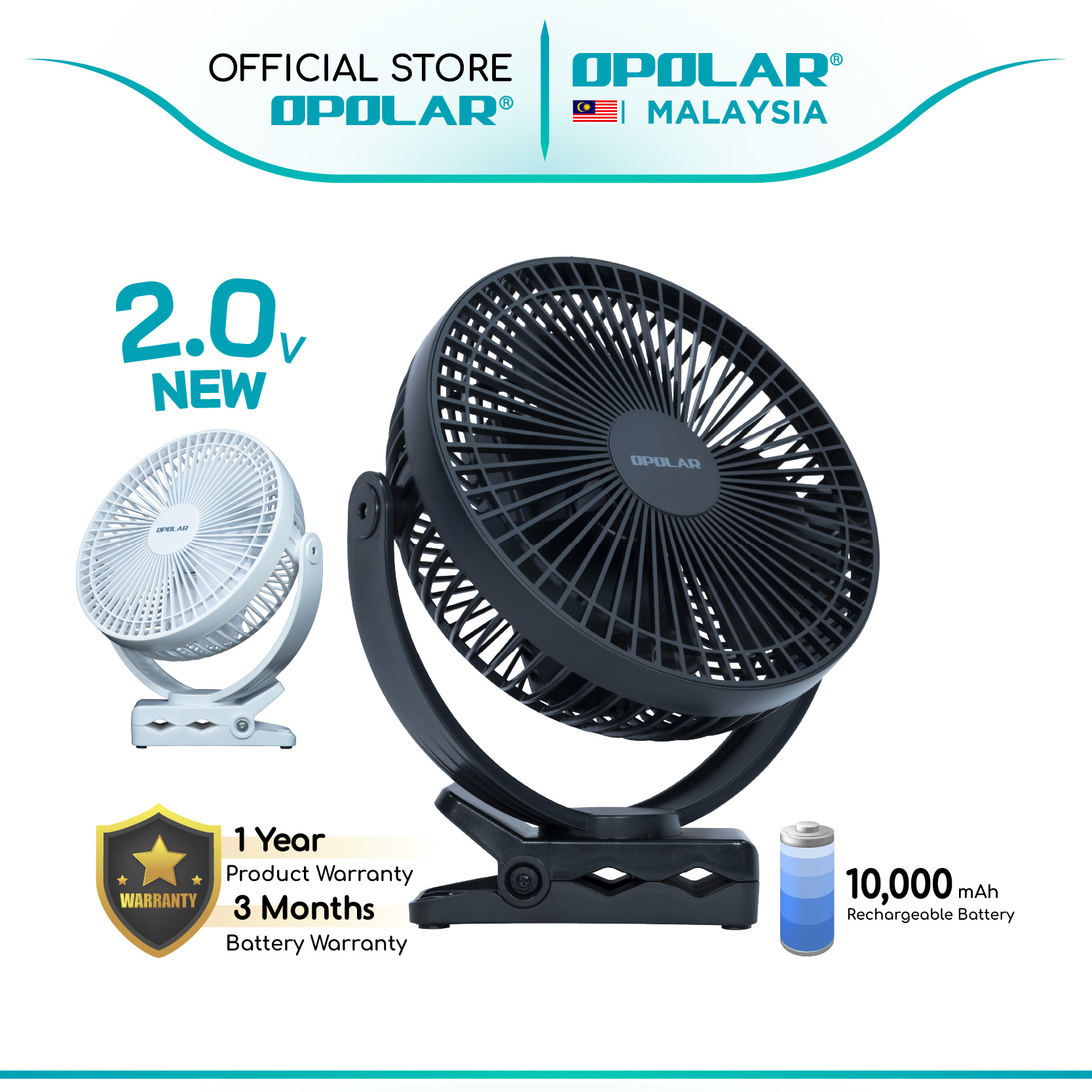 Opolar Rechargeable Portable Clip Fan 8 Inch (10,00mAh Battery Capacity) Model WH310: White
