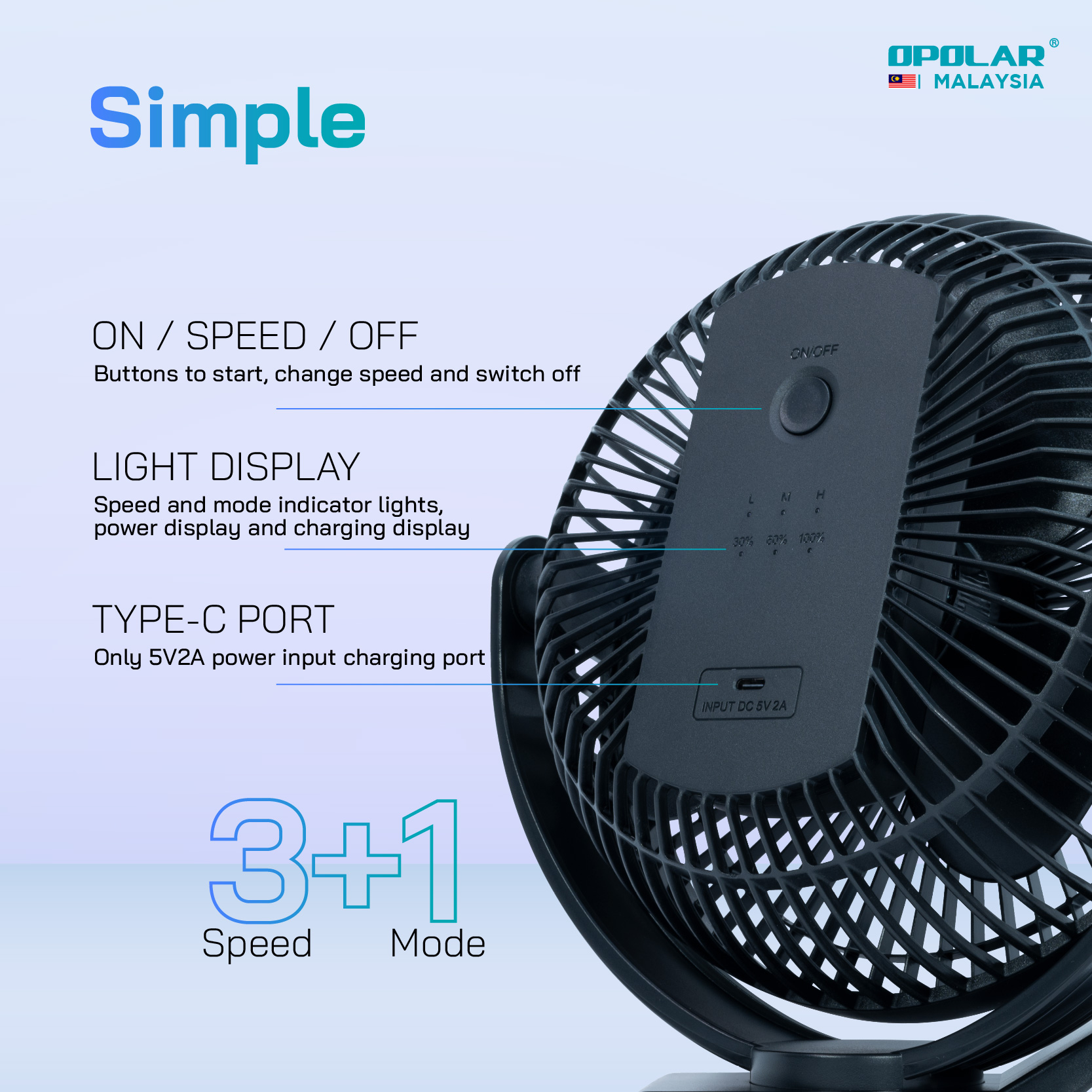 Opolar Rechargeable Portable Clip Fan 8 Inch (10,00mAh Battery Capacity) Model WH310: Black