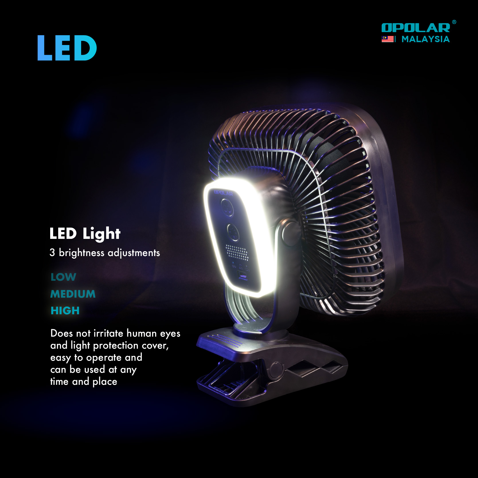 This desk fan can also be clip on fan, suitable for golf cart, baby stroller, treadmill and other outdoor activities. With built-in hook, it’s also the campers’ good friends that they can used it for camping daytime and day night with 3 kids of lightness.