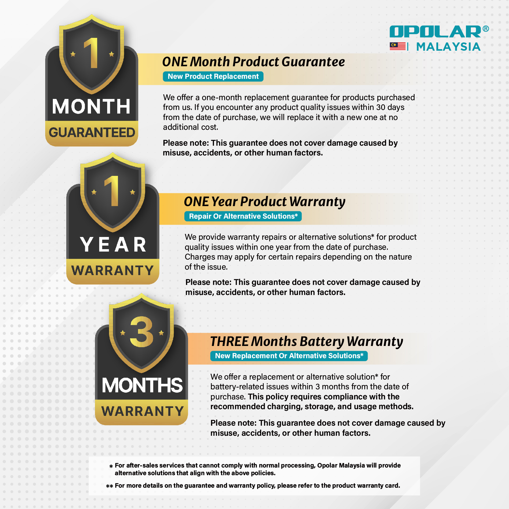 Only Opolar products purchased by Opolar Malaysia Distributor, unlabeled products will be unaccepted